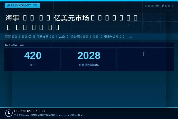 LR 在 4 月 Horizons 给出的最新数字最有冲击力——2024 年海事 AI 市场已达 USD $4.13 B,未来 5 年 23% 复合增长。更值得船东注意的是机构数据:过去 12 个月内进入该赛道的机构数 从 276 家激增至 420 家,环比 +52%。这意味着供给端正在快速厚化,单一供应商锁定的风险下降,而船东的甄别成本上升。