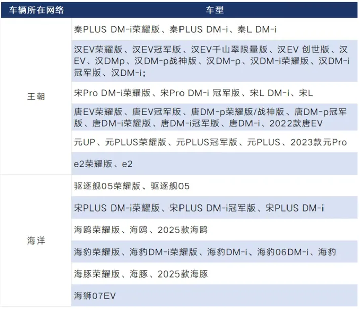 比亚迪:远程诊断已覆盖王朝和海洋系列大部分车型