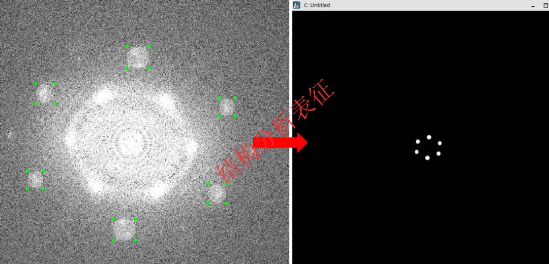 ①对 HRTEM 图做 FFT,得到频谱