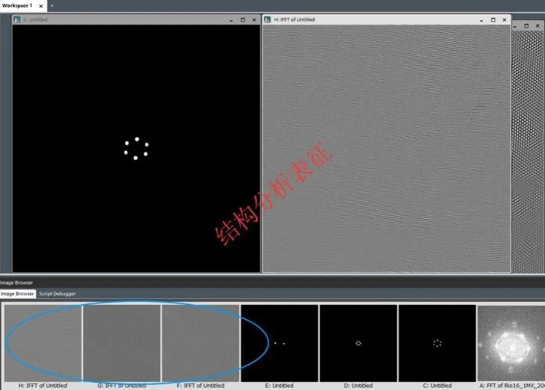 10.将得到的三张IFFT图片保存,保存为dm3或dm4格式。至此我们最重要的一步已经完成。