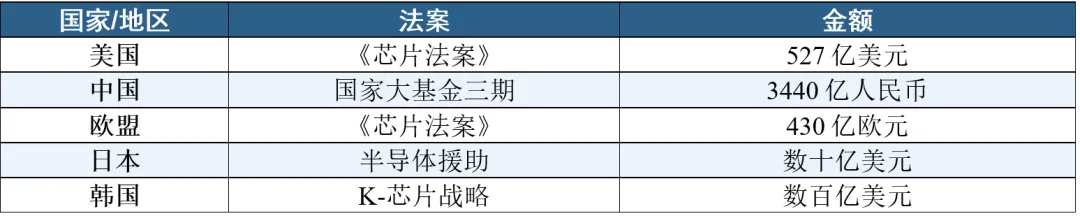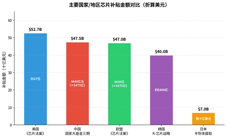 主要国家/地区芯片补贴金额对比