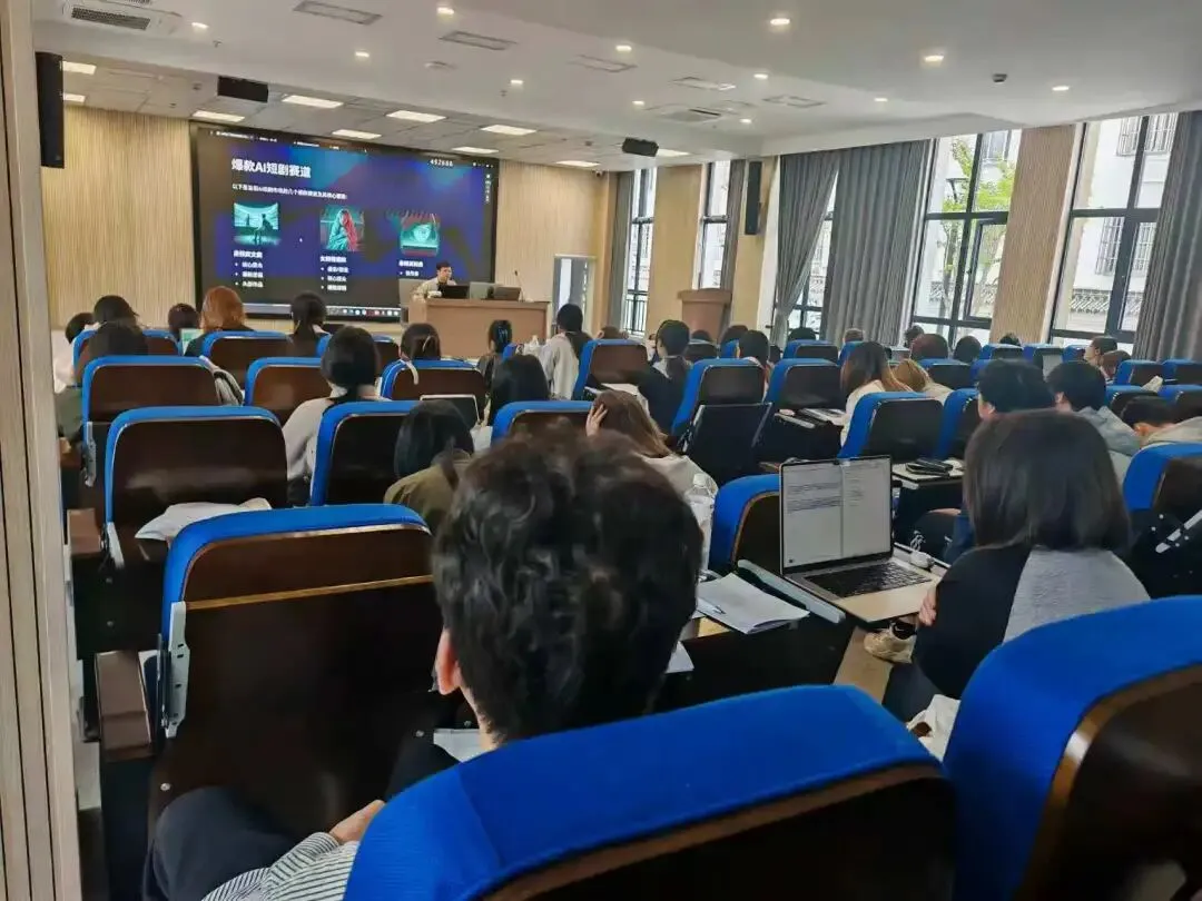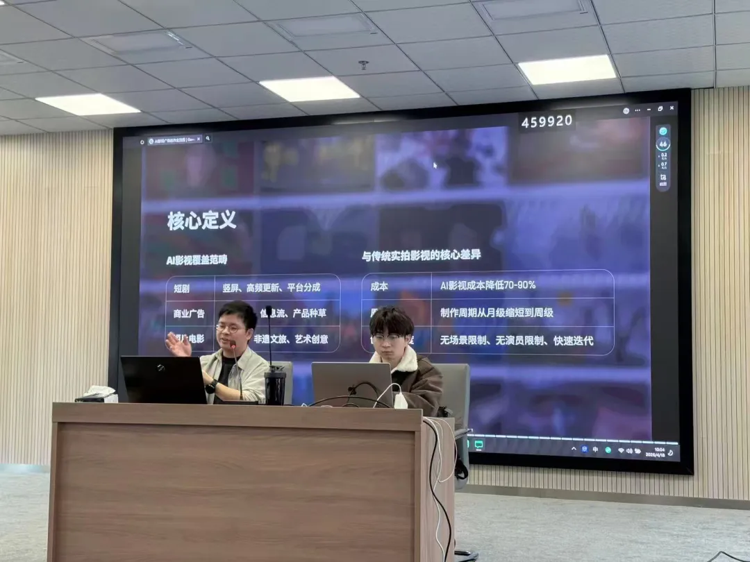 讲师还现场演示了从剧本生成、分镜设计到视频合成的完整工作流,让同学们零距离感受到AI工具在创作效率上的颠覆性提升。