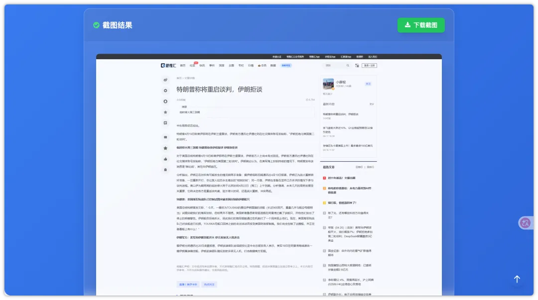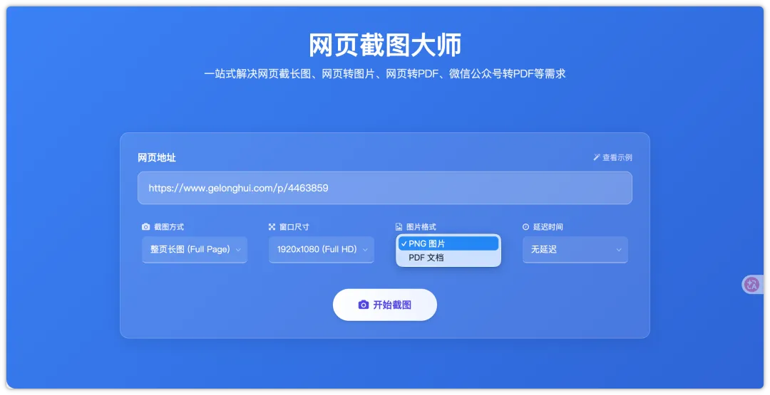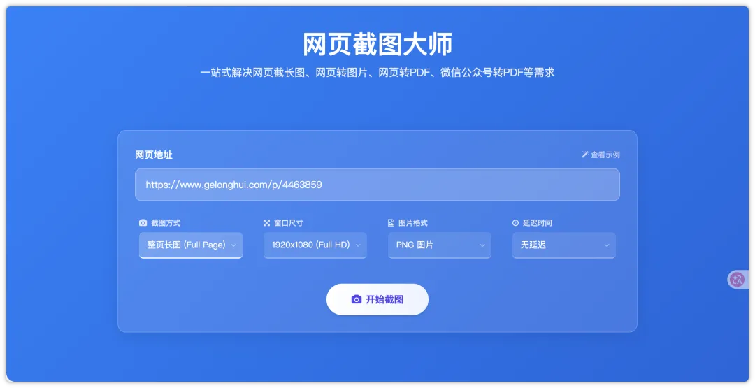 今天给大家分享一个特别的截图神器,它不用你下载客户端,也不用你下载插件脚本,它就是一个在线截图工具“网页截图大师”。它截图方式太简单了,直接将你的网址复制进去就可以,无论是公众号文章还是其他平台的文章,复制任何网页进去就可以截图了。支持首页可见页面截图也可以全屏幕截图,窗口尺寸可以自定义选择,可以是手机尺寸也可以电脑尺寸。可以下载成PNG图片也可以下载成PDF格式的文件。全部功能都是免费的,尤其是我们可以将一些微信公众号的文章转换成PDF,再也不用担心一些敏感文章被和谐了,而且支持批量处理多个网页同时截图处理为PDF文件,还可以选择定时处理哦。我觉得这个工具如果再增加一个图片或者PDF在线编辑处理功能就更棒了,希望开发者可以看到我的这个建议,以后大家想要长截图全屏幕截图或者手机尺寸的截图,可以用这个网页截图大师。地址:https://jietudashi.cn/如果你觉得汤主的这篇文章对你有价值,记得点赞+关注哦。点击下方公众号卡片即可关注我