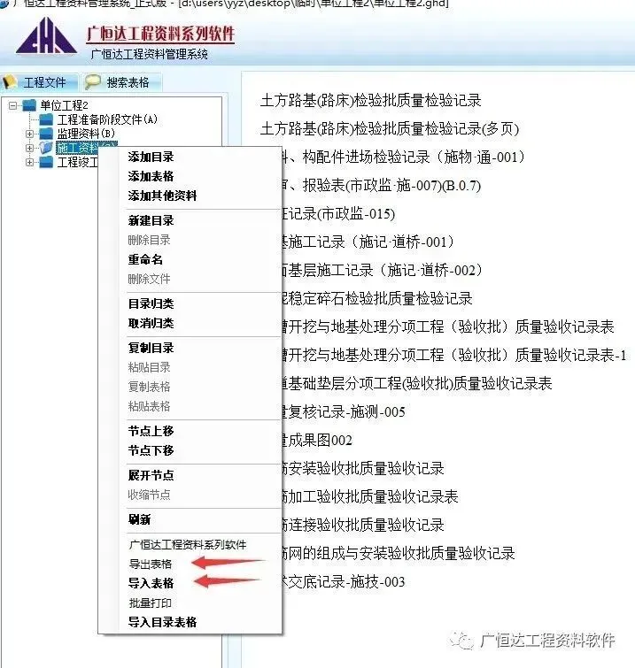 【导出表格】【导入表格】是主要是针对单表的传递操作。有时需要某一个或几个表传递给相关人员,采用导出表格后的文件传递给相关人员,相关人员导入自己的项目中查看使用。导出表格后的格式不支持其他软件打开,必须使用相同权限的软件带加密狗导入打开。