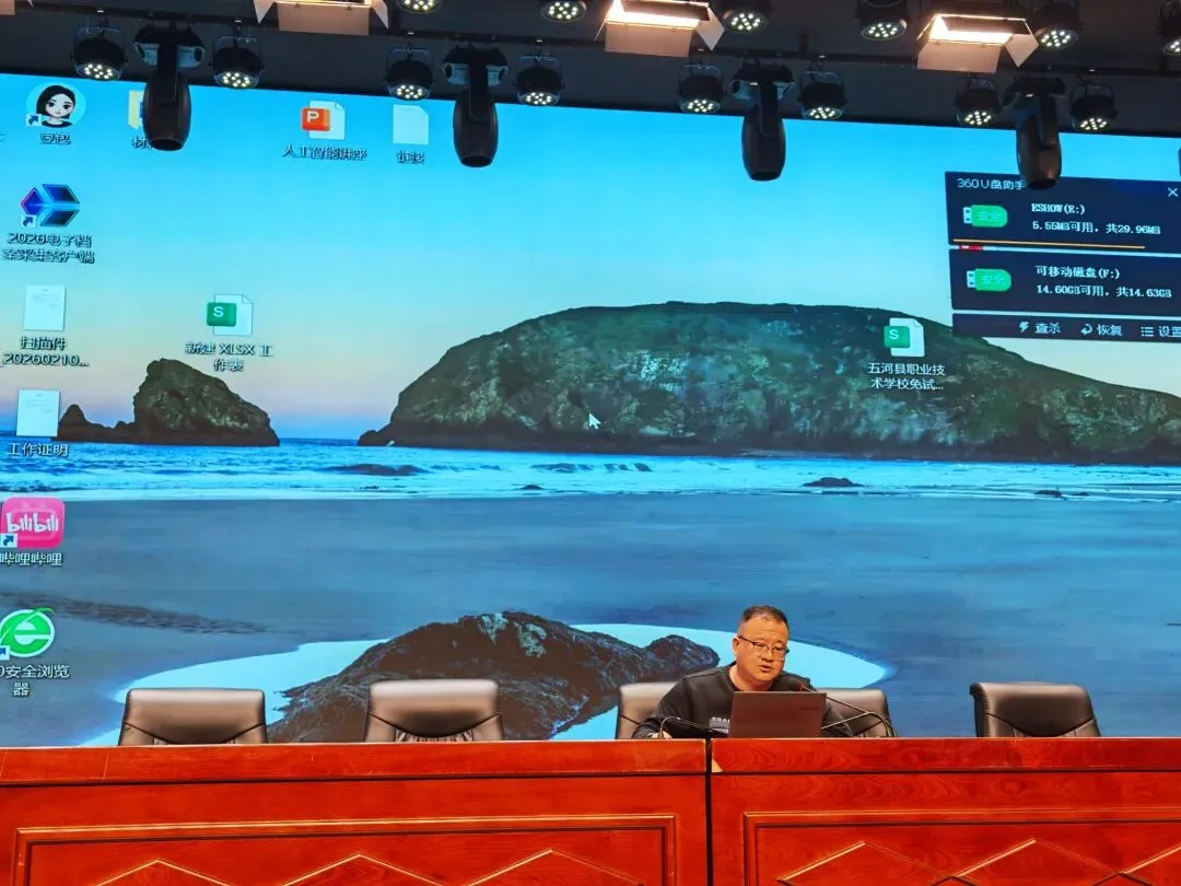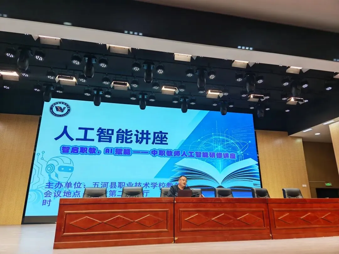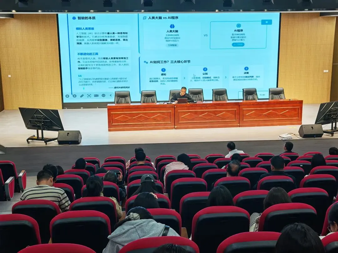 为深入落实教育数字化战略,普及人工智能基础知识,提升班主任科技素养与创新能力,4月19日晚,五河县职业技术学校在第二报告厅隆重举办人工智能课程专题培训讲座。本次活动由教务副主任衡波涛主讲,副书记蔡维超和全校班主任代表共同参与,开启一场贴近生活、面向未来的AI科普盛宴。