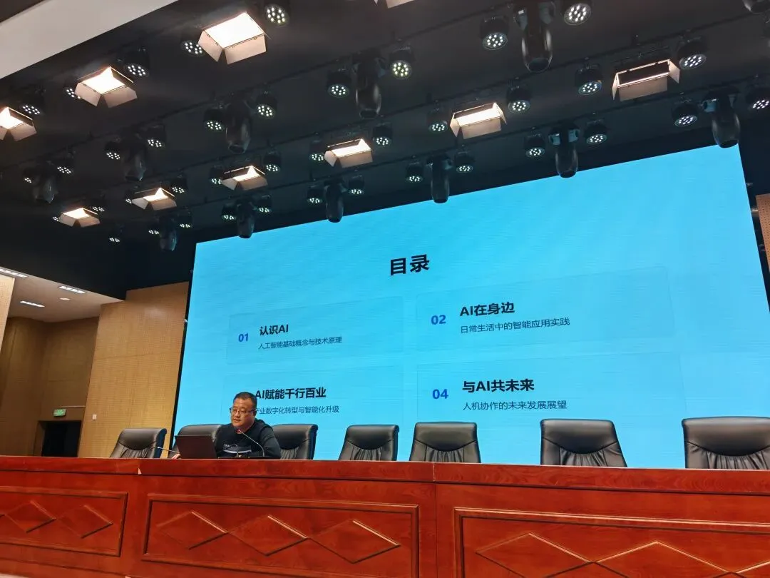 讲座以“智启职教,AI赋能”为主题,从AI发展历程、核心技术原理、生活应用场景、伦理安全与未来展望等方面展开讲解。专家结合智能语音、人脸识别、生成式AI等鲜活案例,用通俗易懂的语言拆解机器学习、大数据、算法等专业概念,通过互动问答、现场演示、趣味案例辨析等形式,让抽象科技知识变得生动可感。