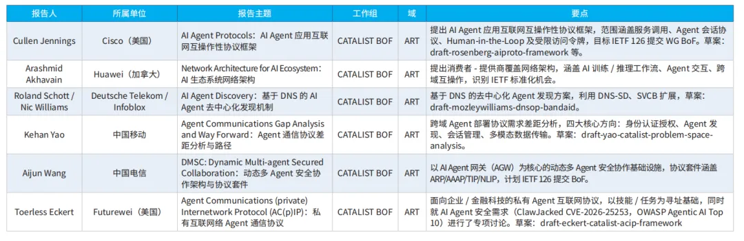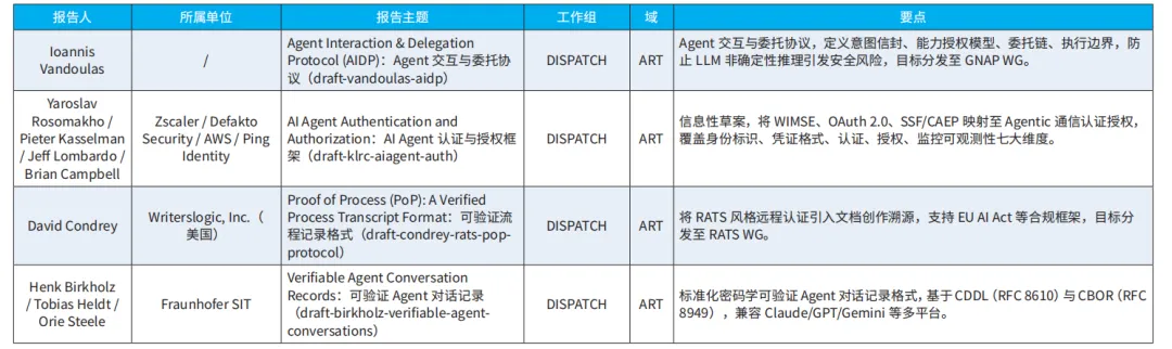 经过全面梳理,本届IETF125共有以下AI/Agent相关报告分布: