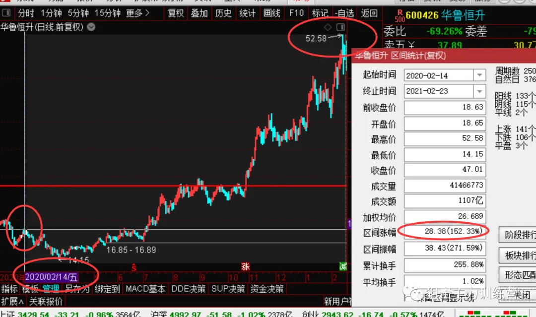 20年2月14号分享的华鲁恒升,之后1年时间暴涨150%