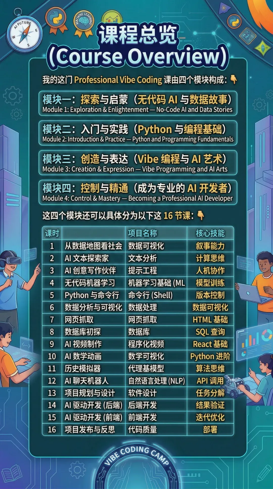 我自己在教学和产品工作中也深刻体会到:会用 AI 的开发者,效率能提升数倍。所以今天也想把我一直在打磨的课程推荐给你: