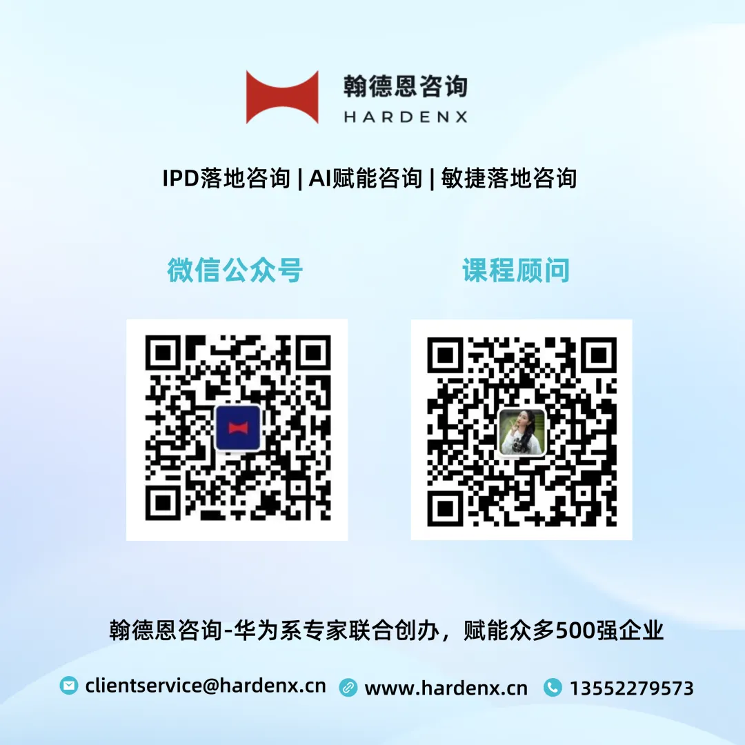 翰德恩咨询,汇聚众多华为等世界500强10年以上资深专家与AI数智化实战专家,以深厚的IPD实战经验为底座,以敏捷方法为执行引擎,以AI技术为驱动,帮助企业重构业务流程、提升研发效能,实现降本增效与业绩持续增长。我们倡导轻量化IPD导入、敏捷与AI融合落地,结合企业行业特点与组织能力量体裁衣,已辅导众多企业实现升级——让效率看得见,让增长真实现!