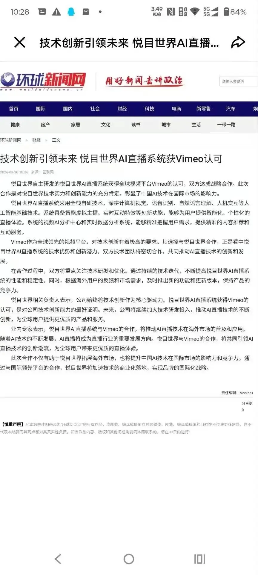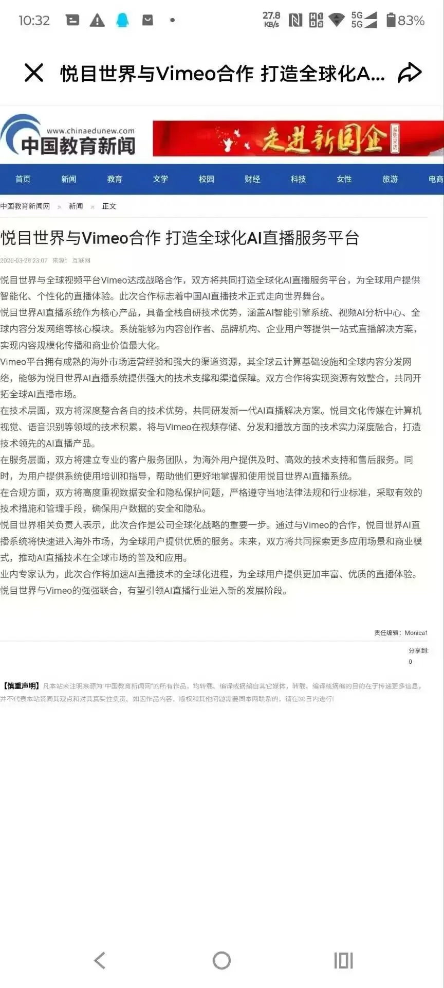 官网报道