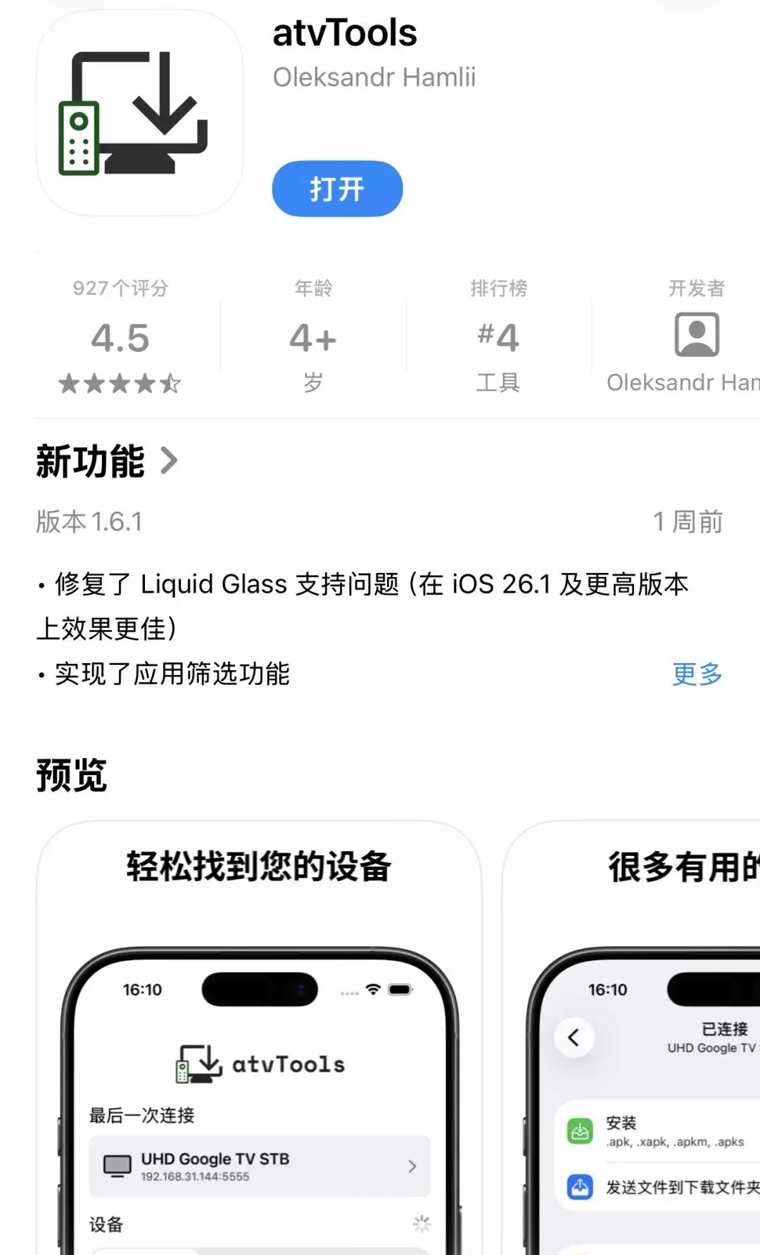 5.在苹果软件商店下载atvTools软件并安装;