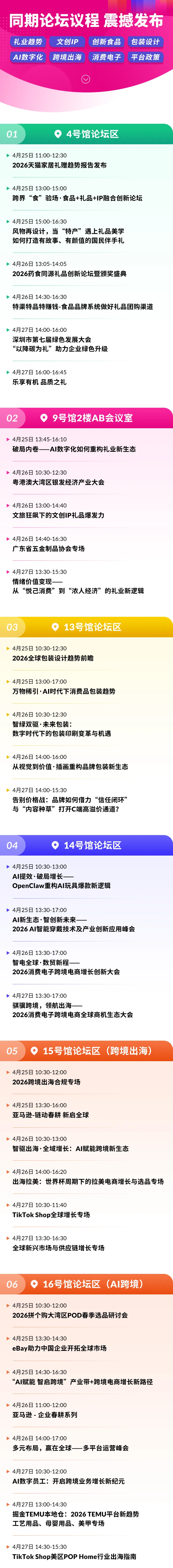 每年4月正值上半年采购高峰期,本届展会现场将特别策划:礼品家居、跨境出海、礼品包装、消费电子、AI领航跨境增长大会五大主题30余场论坛/活动,礼业人汇聚一堂,共话礼业新发现!