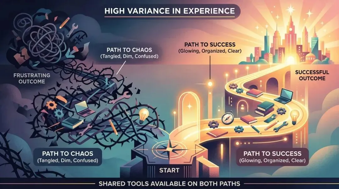产出质量取决于工具、使用者、以及两者之间的匹配——三个变量都不稳定,排列组合出来,体验自然天差地别。