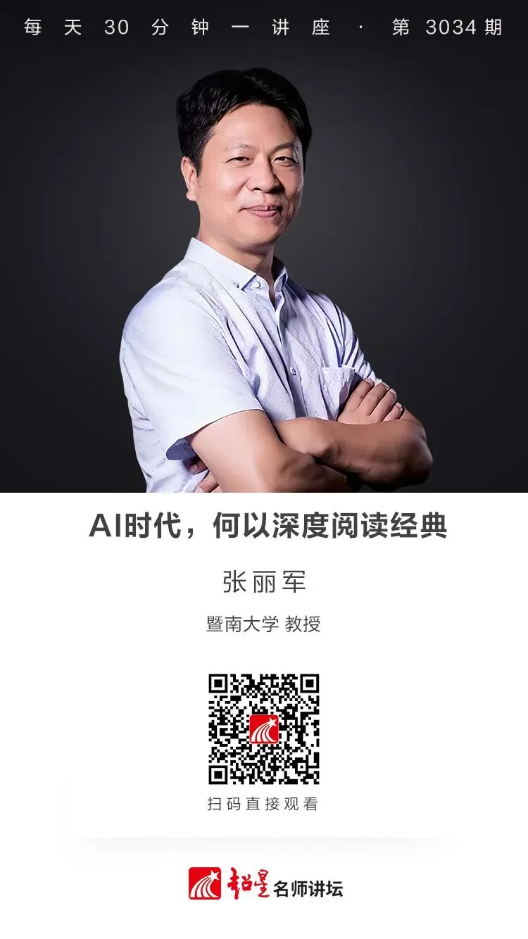 AI时代,为何我们仍需深读经典?本场讲座,张丽军老师将为我们推荐中国文学必读名著,探讨深度阅读的价值与方法,提出“从游阅读”理念——和师友一同在经典中与作者对话、与思想共游,重新学会沉浸式、思辨式的阅读方式。