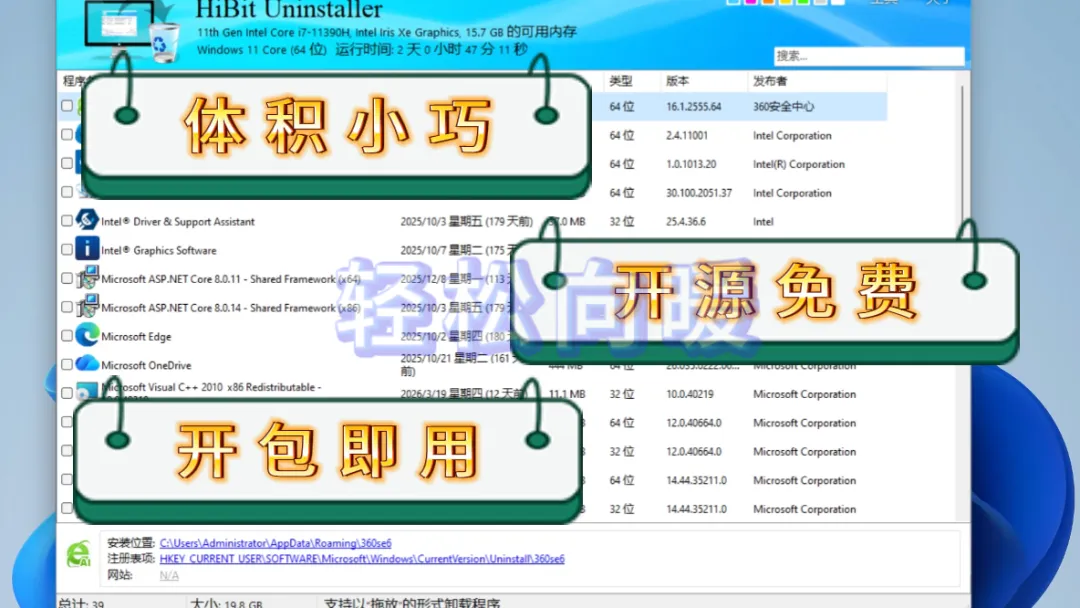 它不仅能卸载电脑上的那些顽固分子,甚至连系统自带的无用组件也能轻松清除。