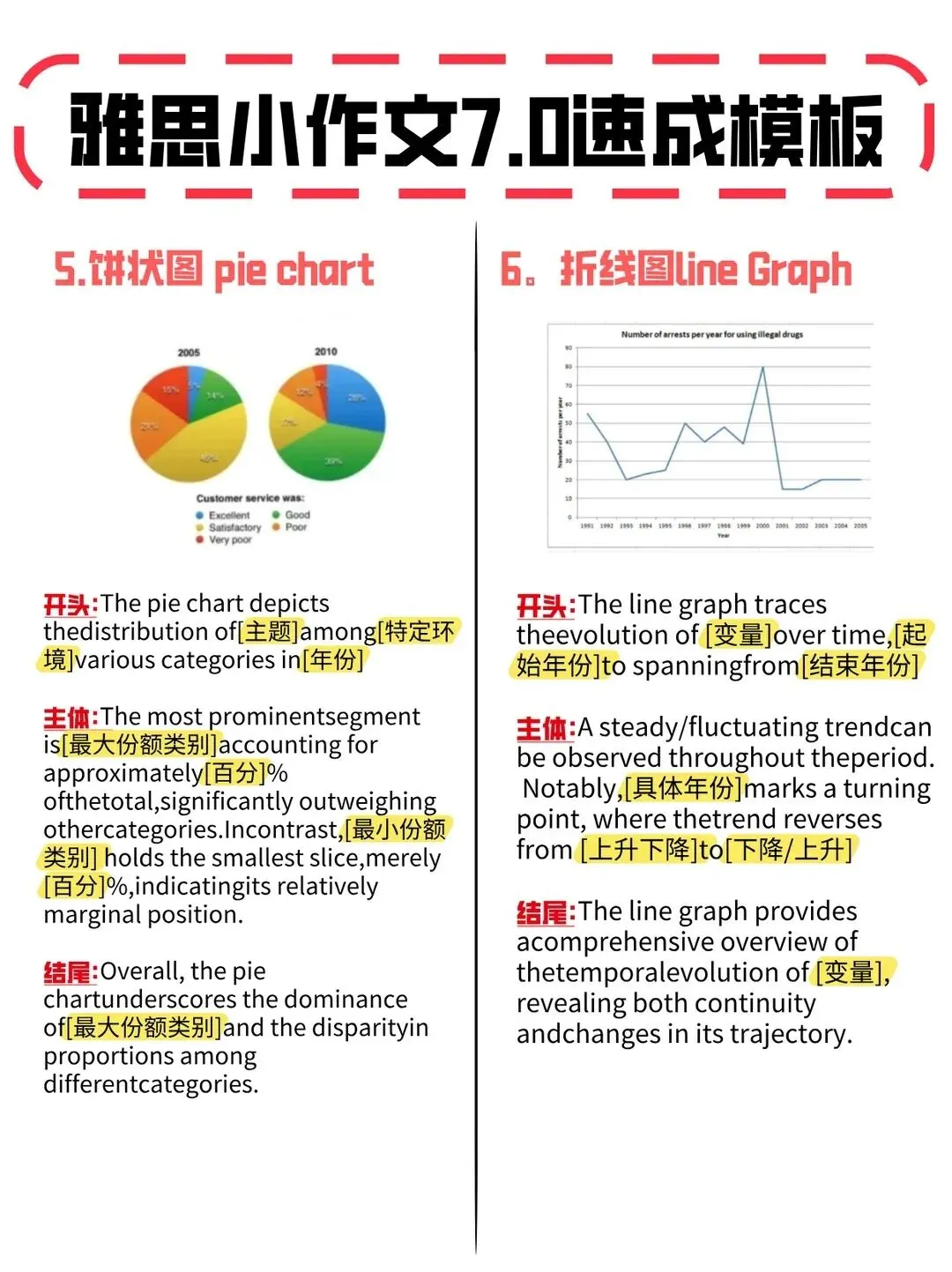 🔥这份《雅思小作文7.0速成模板》能让你迅速理清思路,知道每个部分该写什么;而且包含了考官喜欢的高分句型和逻辑结构,通过套用模板,你能学会如何突出重点数据,有效的对比和趋势分析,轻松提升雅思小作文分数