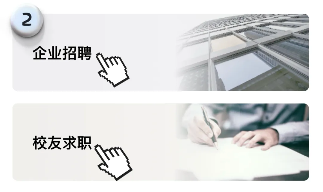 求职者,可进入“企业招聘”版块,点击你感兴趣职位,进行简历投递;或在“校友求职”版块直接发布你的简历,向校友企业进行直接展示。