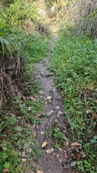 【赛段概述】从CP2颐方竹出发,一路向下,穿过颐方竹酒店区域,1.5公里后到达33KM组分流点(33KM组左转,56KM组右转),左转沿公路前行500米,横穿G210国道,继续前行800米到达33KM组与56KM组的汇合点(33KM组直行,56KM组右转),直行,前行500米后进入小路,900米后左转进入村道,沿村道前行1.2公里后右转,经过300米的小路后回到马路,沿马路前行200米到达CP5长沟。