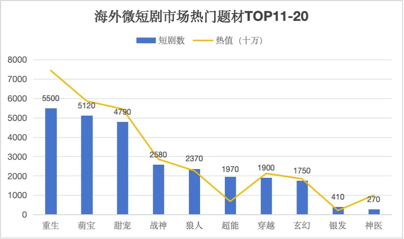 海外微短剧题材类型呈现多元化发展趋势,萌宝、玄幻、银发、神医等多题材进入海外微短剧市场热门题材的前二十。“萌宝”等题材短剧数超5000部,热值达5亿量级以上。玄幻、银发、神医题材跻身海外微短剧市场热门题材TOP20,玄幻热力值突破1.75亿,短剧数据突破1800部,神医和银发题材部数分别突破1000部和200部。2025年,YouTube微短剧题材中,悬疑/刑侦/探索类和科幻机甲机械类分别占比2.53%和2.27%。