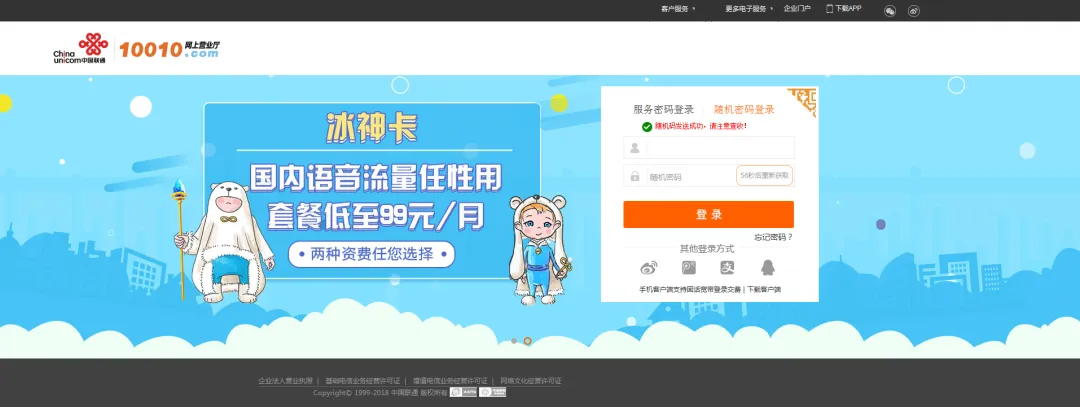 2、登陆网上营业厅:服务密码没有可以短信验证的方式