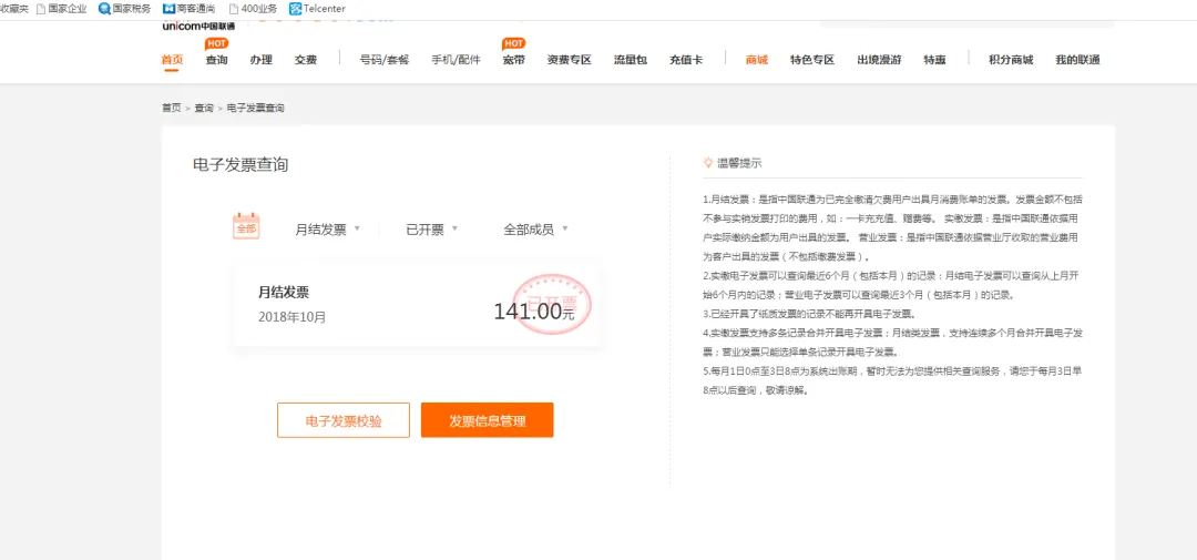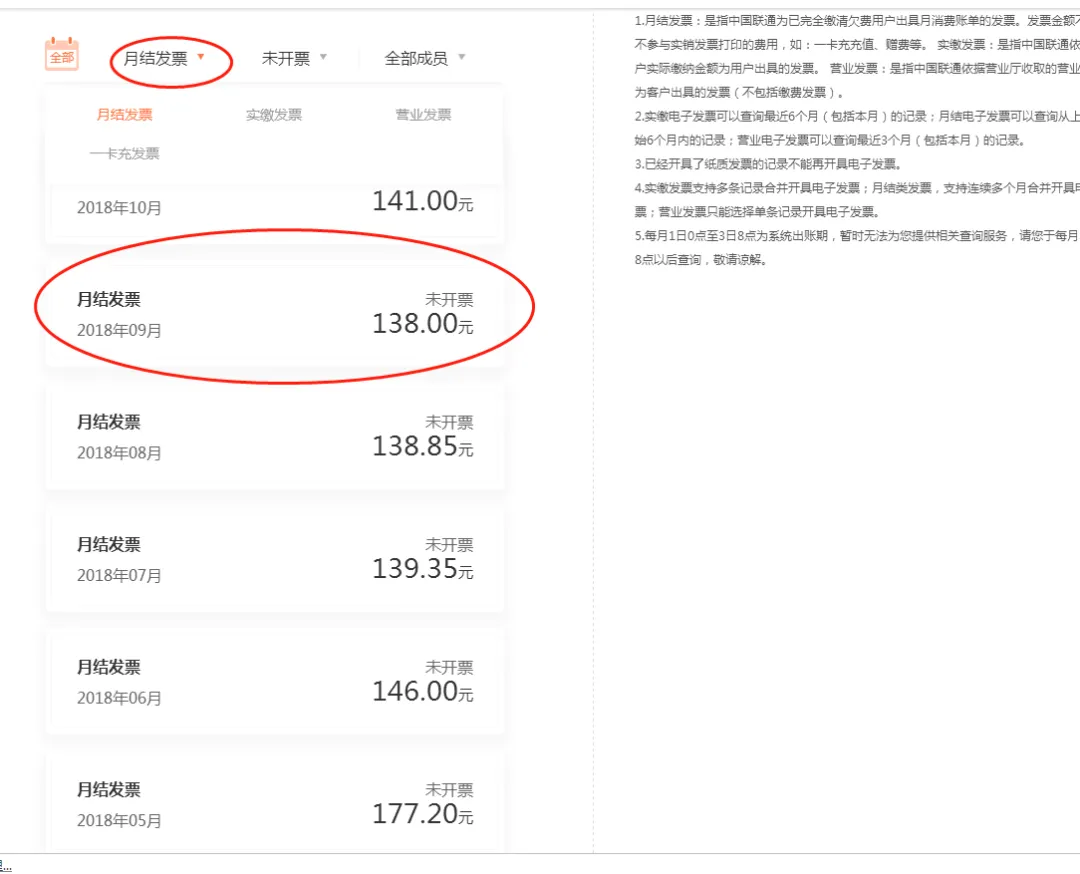 4、进入我的发票后,可以选择缴费发票或者月结发票,选择月份,有发票显示出来之后直接点击开具或者推送到的自己邮箱里,点击完开具之后可以直接下载出来的~