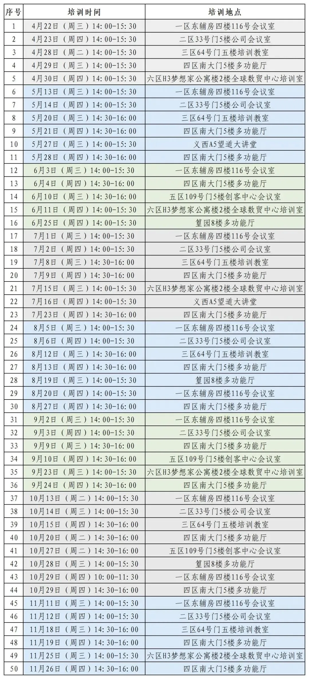 全年计划开展50场