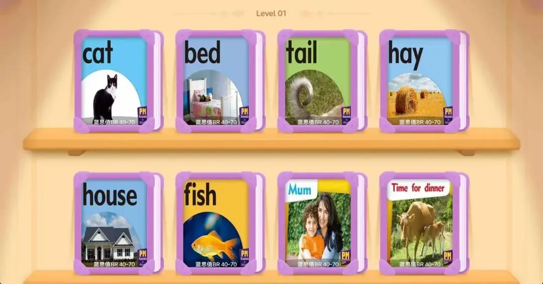 PM英语分级阅读:15个级别、1400+本绘本、2200+个词汇。