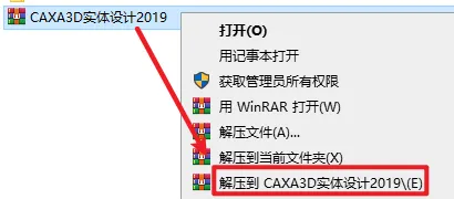 1.选中下载的安装包,然后右键选择"解压到 CAXA3D实体设计2019"