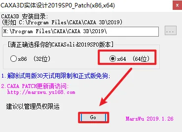 11.根据电脑的操作系统位数选择“X86”(32位操作系统)或" x64"(64位操作系统),点击"GO"