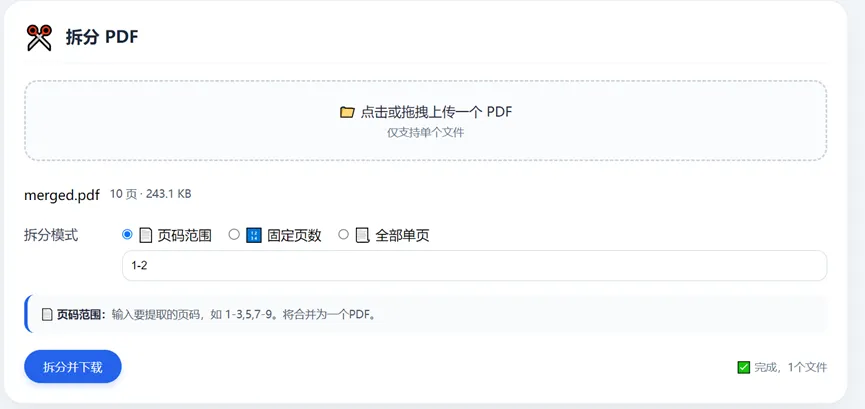 1.按页码范围:输入“1-3,5,7-9”,把这些页面抽出来合成一个新PDF。