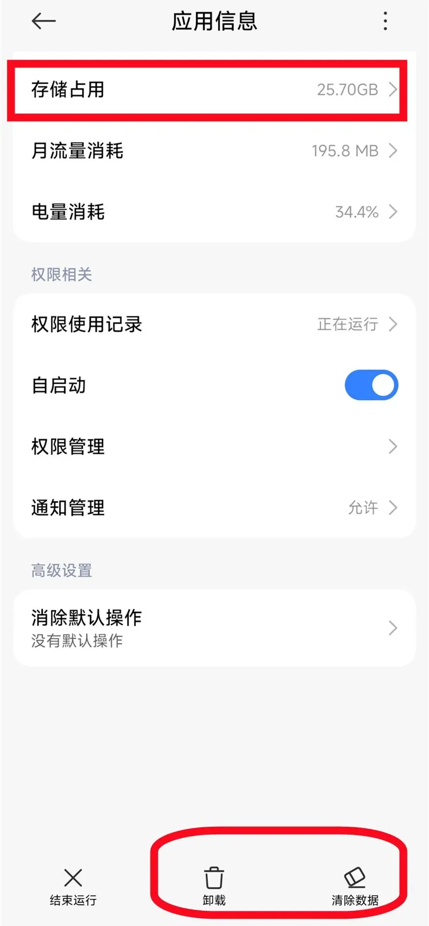 等清理完成后,咱们再返回到应用信息页面,最后再点击【卸载】按钮,把这个软件给彻底卸载掉。