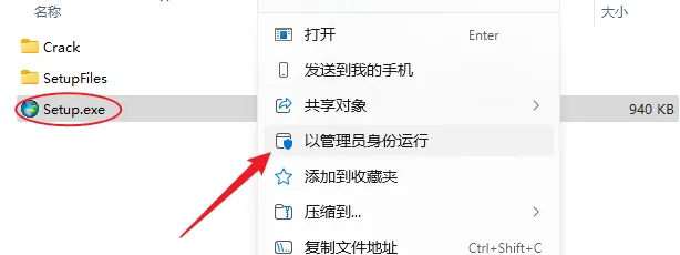 3.鼠标右击【Setup.exe】选择【以管理员身份运行】。