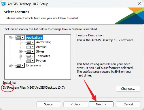 7.选择软件安装路径,建议和教程中的保持一致,本例安装到D盘(将路径地址中的首字符C改为D表示安装到D盘,安装路径不要出现中文),点击【Next】。
