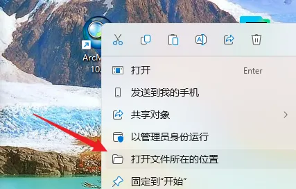 16.在桌面上找到【ArcMap 10.7】软件图标,鼠标右键点击【打开文件所在位置】。