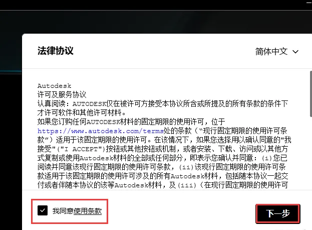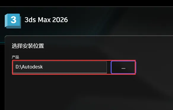 接受许可协议,将安装路径修改为非系统盘(如 D:\3dsMax2026),确保路径不含中文和特殊字符,点击安装。