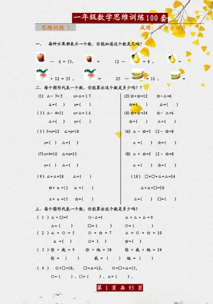 一年级(下)数学 思维训练题100套