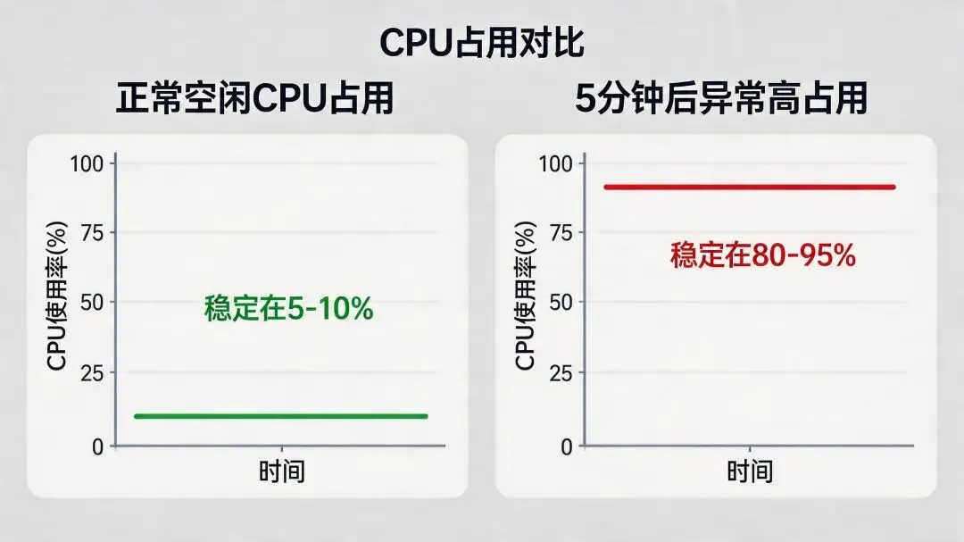 再教你一个简单自查的办法。开机以后什么都别动,就放着,静置五分钟。然后打开任务管理器看处理器占用率。正常情况应该是个位数,偶尔跳到十左右。如果一直稳在三十以上,大概率有问题。