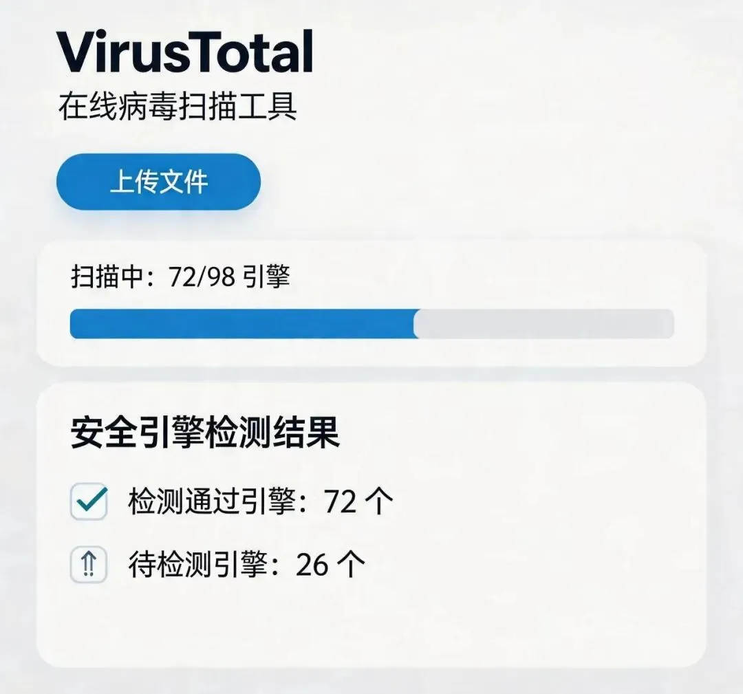有个免费网站叫 VirusTotal,网址是 virustotal.com。你把下好的安装包拖进去,它会用六十多款杀毒引擎一起扫。如果报毒数量超过五个,别犹豫,直接删。