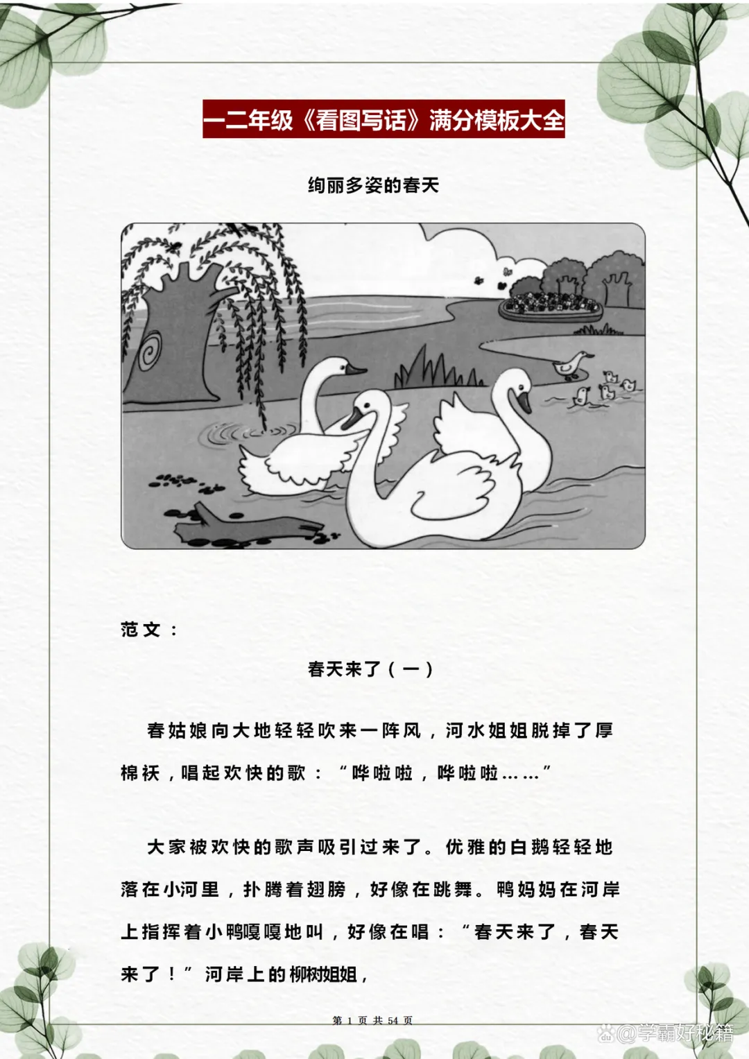 接下来呢,老师为大家整理并分享的是一二年级《看图写话》满分模板大全!家长打印给孩子,参照练习!写作能力蹭蹭上涨。