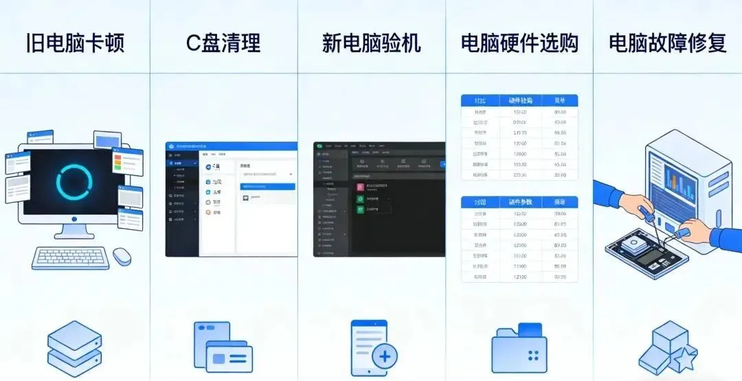 不管是学生党、打工人,还是中老年朋友,电脑早就成了生活工作必备品。但90%的人都踩过这些坑:旧电脑卡成PPT,开机要等三五分钟;C盘天天变红,删文件都没地方下手;买新电脑被奸商忽悠,花大价钱买低配机;小故障找人修,动辄花几十上百块...