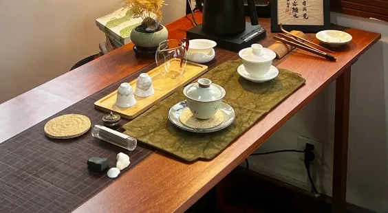 坐下来,他烧水泡茶。白瓷盖碗。投茶,洗茶,出汤。我端起杯子,喝了一口。就是老王家那个味道。一模一样。我就喝这一口,心里那块十五年悬着的石头,"咚"地落了地。他给我续上第二泡。我们就在他家木头桌子前对话,