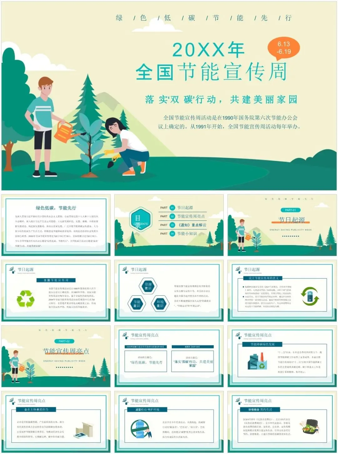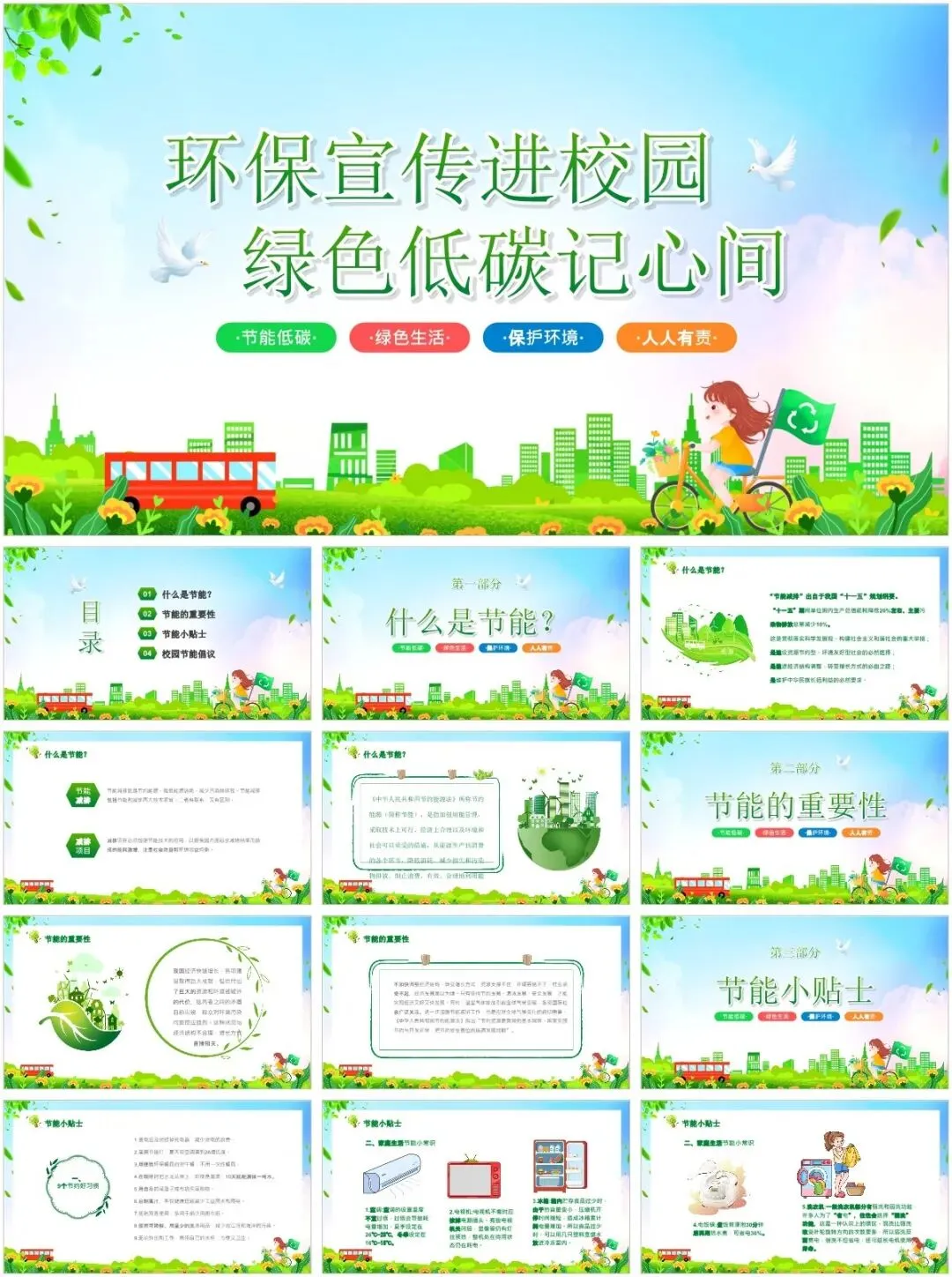 限时分享!32套绿色低碳PPT模板,环保宣传/科普活动一站搞定💡小提示:精品PPT模板库每天9点定时分享精品PPT模板,大家可以把公众号设为★星标,第一时间获取最新推送,以防错过优质内容。这次给大家整理了32套节能减排主题PPT模板,全部免费获取,做环保宣传、绿色低碳主题汇报的朋友建议先收藏!这批模板聚焦节能减排、绿色低碳、环保可持续发展这些主题,配色以清新的绿色、蓝色为主,视觉上给人干净、环保、科技的感觉。模板内容涵盖了碳中和、新能源、环保政策、绿色生活、企业ESG报告等常见场景,页面结构完整,数据图表、时间轴、对比分析这些常用模块都有,直接替换内容就能用。特别适合学校环保社团做宣传、企业做绿色发展战略汇报、政府机构做节能减排工作总结,或者做环保主题的演讲、比赛、科普活动。32套风格各有侧重,有的偏商务正式,有的偏活泼科普,可以根据使用场景灵活选择。节能减排和绿色低碳是现在的大趋势,这类主题PPT资源相对稀缺,32套一次性打包分享,有相关需求的朋友赶紧保存!本期PPT模板预览图🧡拿图🥰关注 | 👍点赞 | 🧡推荐 本期PPT模板领取第一步:点亮右下角的 “赞”+“在看”+"留言"第二步:关注下方公众号,后台回复“260421”,无套路免费获取本期资源。👇👇👇扫码获取↓ 往期精选甘特图表PPT模板,包含周月年工作计划等场景20套绿色励志商务风PPT,会员免费用别再熬夜做PPT了!我整理了1000+套免费模板给你杜绝垃圾PPT,3000+套高级PPT模板合集,适合99%的新手借鉴使用,包更新!教学能力教学创新大赛PPT合集130套,可直接套用还不知道怎么回复编号的朋友请看下图: