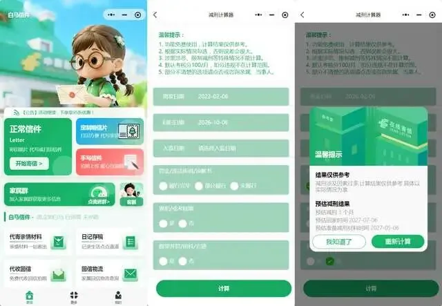 回家工具:白马免费提供“回家倒计时”和“减刑预测”计算器,帮你和里面的他一起规划未来。 价格厚道:收费透明,常年满减(10-1/20-2/30-3/40-5)及95折,节假日更有精美礼品赠送。 全能周边:如果他需要回信,我们可以在信封里预装挂号信回信信封和邮票,这是白马家属的“基操”。