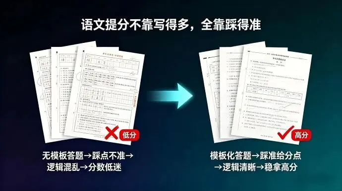 你不用背完所有的古诗文,不用积累海量的作文素材,只要掌握标准化的答题模板,踩准阅卷老师的给分点,用好作文万能框架,保证不跑题、结构清、踩点准,就能在最后阶段,实现语文的快速提分。