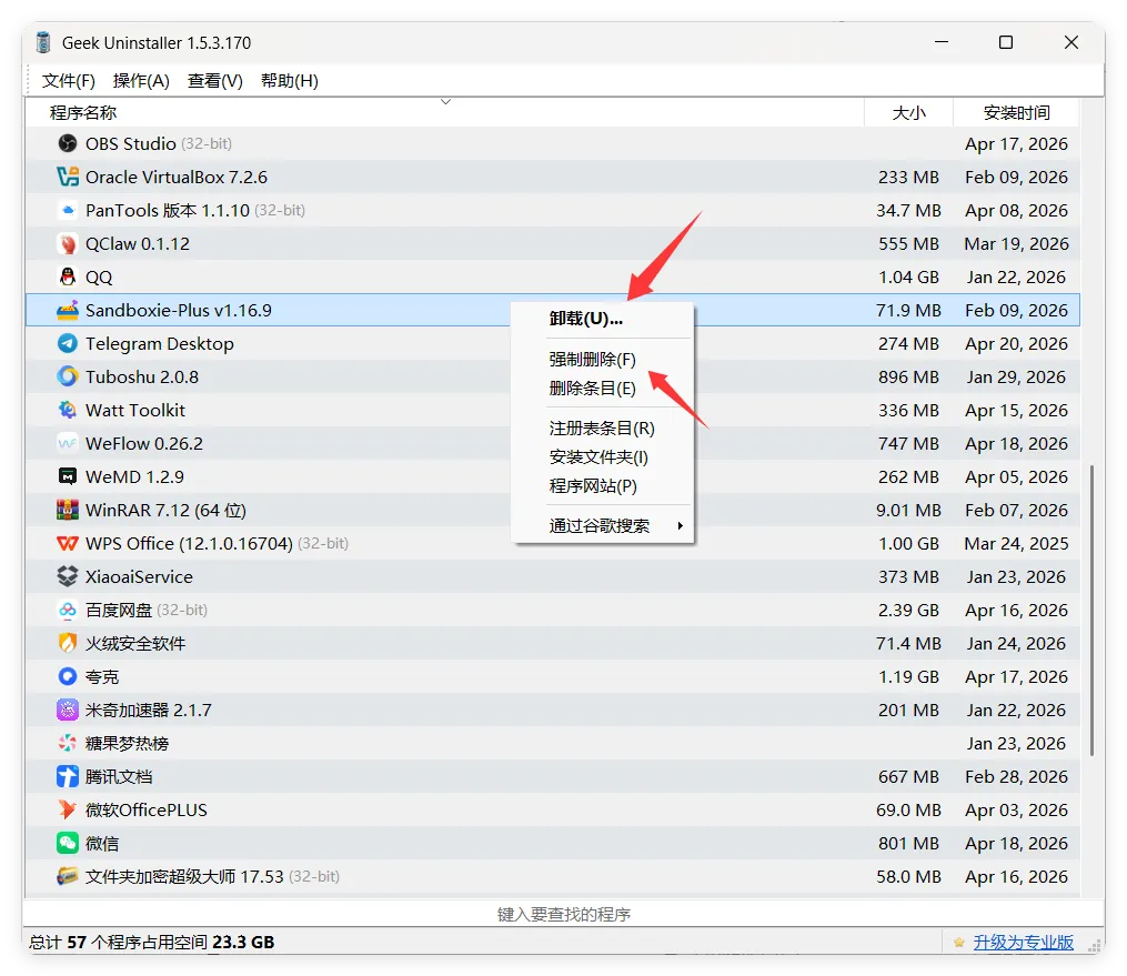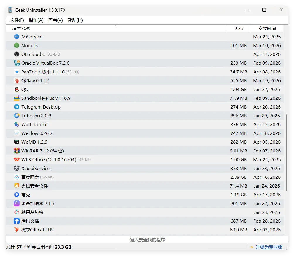 Geek Uninstaller是一款完全免费且极为轻量的专业卸载工具,整个程序只有一个单文件,仅2MB左右,无需安装,下载解压后双击即可直接使用