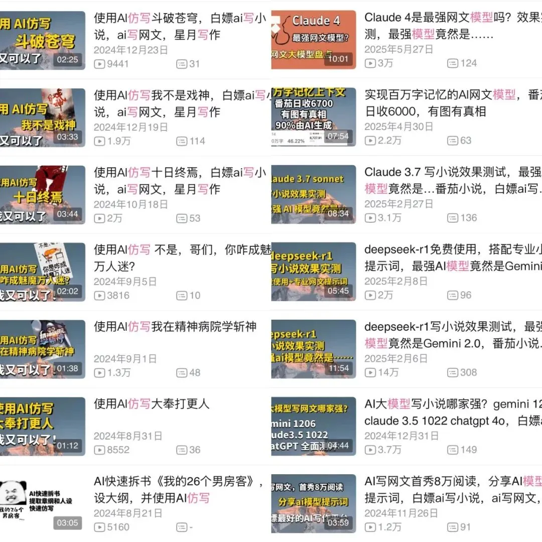 赚钱一直是社交平台上的流量密码,在星月写作的矩阵自媒体账号中,“AI写小说月入50万”、“16岁少年日收4000”、“十年扑街作者靠AI翻身日收9000”、“AI写短篇小说一周收入15万”、“每天10分钟稿费9000+”等炸裂标题和开头比比皆是。