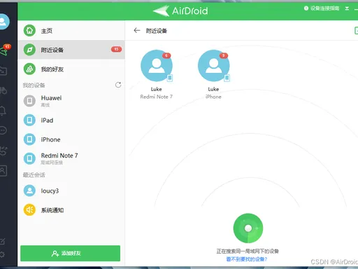 说明:手机、电脑连接同一个 WiFi,两端登录相同 AirDroid 账号