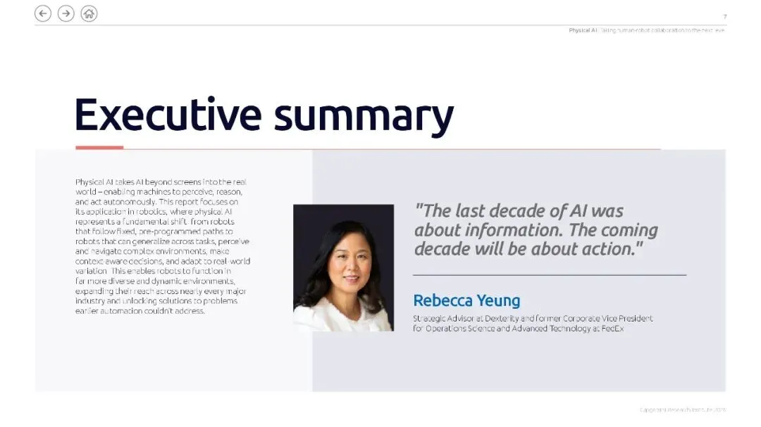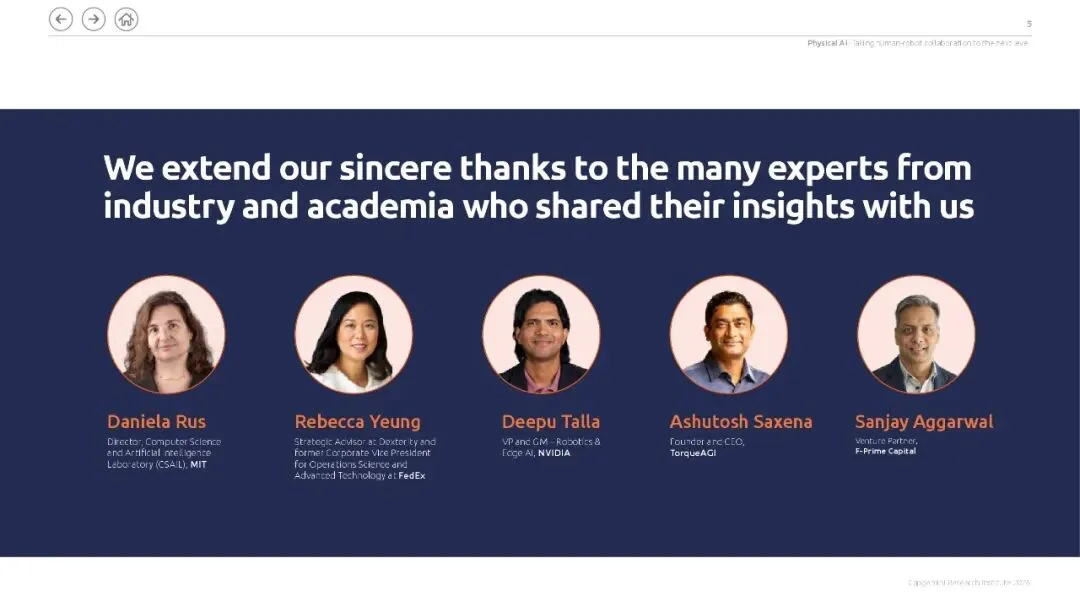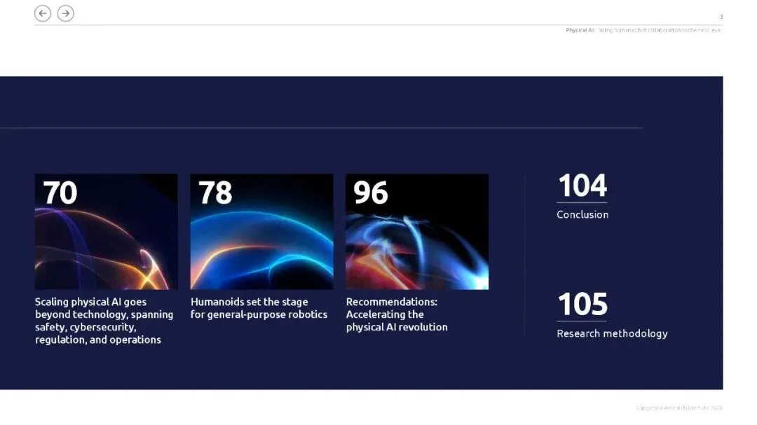 - Challenges: The main barriers to scaling physical AI include accuracy, safety, cost, and ROI. Additionally, societal readiness and public acceptance remain significant hurdles, especially for humanoid robots.