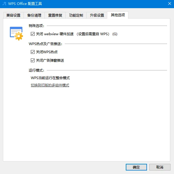 WPS 官方标准版曾经因为广告过度,导致用户口碑急剧下滑,现在虽然仍有广告和弹窗,却也提供了关闭选项,只不过后台进程会常驻。